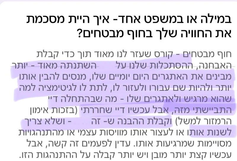 לא תישארו לבד עם השאלות. יש לכם גב, יש לכם מקום לשתף, ויש לכם מענה מהיר כשמשהו מאתגר אתכם בזמן אמת.