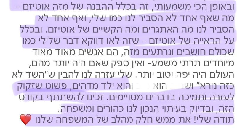 ראיתי הורים שיוצאים מאבחון מבולבלים, מותשים, ולא יודעים לאן לפנות. ראיתי משפחות שמקבלות המון טיפולים – אבל בבית הבעיות רק מחמירות. ראיתי ילדים מדהימים שהמערכת פשוט לא רואה אותם.