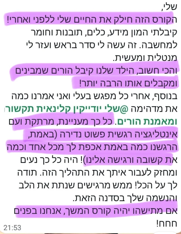 לא רק לשרוד את היום. לא להרגיש שאתם כל הזמן במצב חירום. אלא להצליח ליהנות מההורות, לחבק את הילד שלכם כמו שהוא, ולדעת שאתם מעניקים לו את ההורות הכי טובה עבורו!